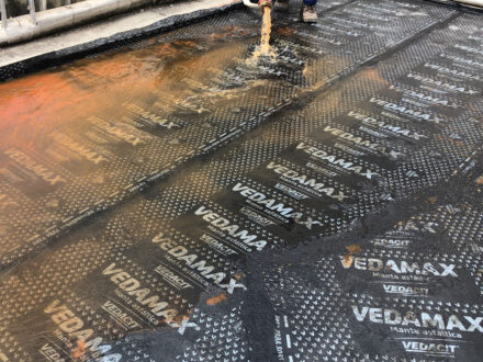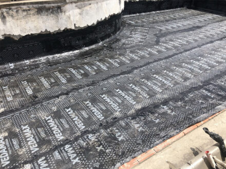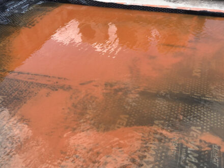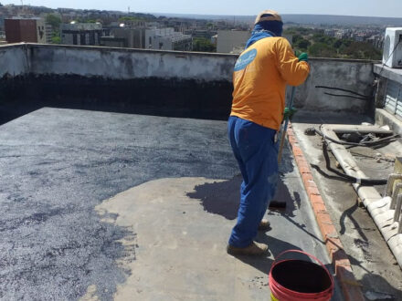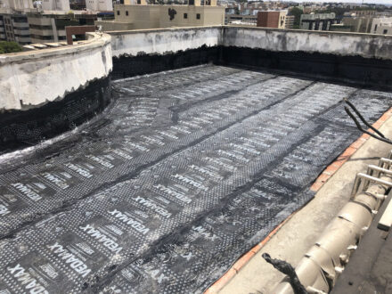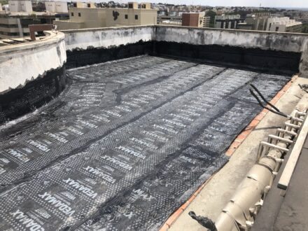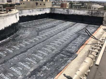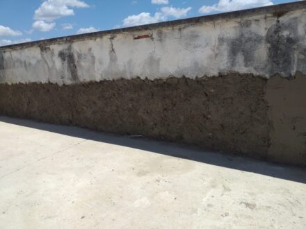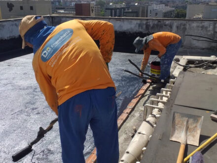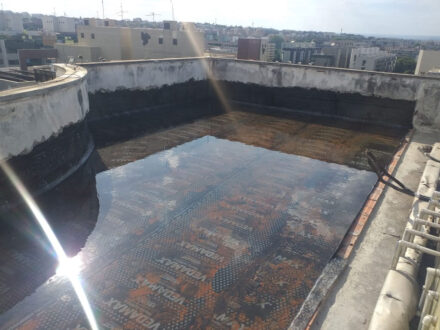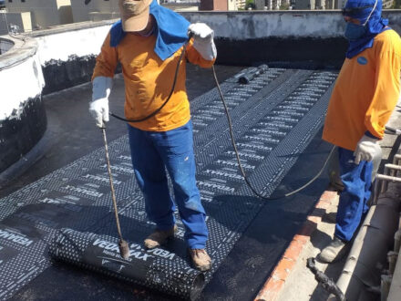Com a infiltração aparente no apartamento da cobertura do edifício, o Condomínio nos contratou para a manutenção corretiva da área da cobertura do edifício, foi feito a demolição de todo o contra-piso, remoção da manta antiga, refazimento de piso e reboco em parede, aplicação de manta asfáltica, teste de estanqueidade conforme especifica a ABNT NBR 9574 e refazimento do contra-piso.