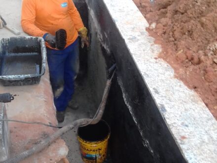 Com a degradação da estrutura do prédio devido a infiltração, a Iris Gestão nos contratou para a manutenção corretiva da área do externa do jardim, foi feito a escavação até a manta existente, remoção da manta antiga, refazimento de piso e parede, aplicação de manta asfáltica e teste de estanqueidade conforme especifica a ABNT NBR 9574, e por fim, reaterro.