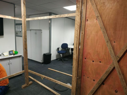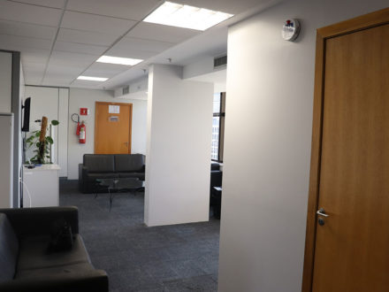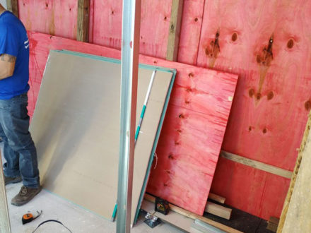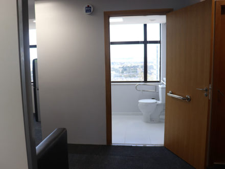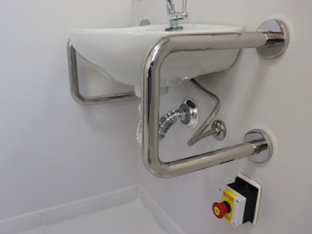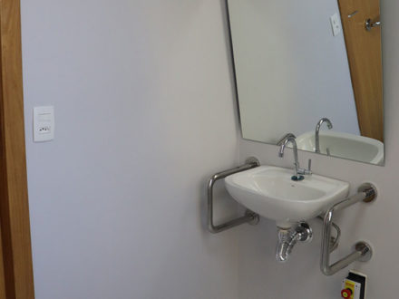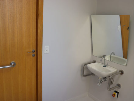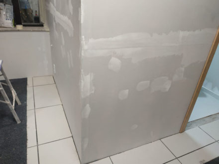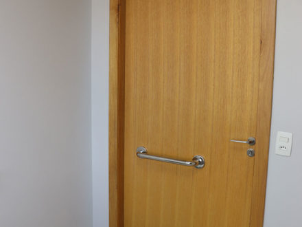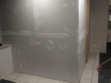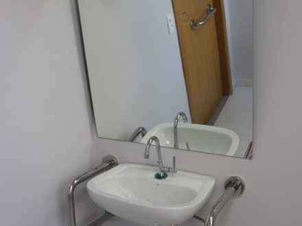 Instalação de paredes em Drywall com chapa resistente a umidade, emassamento de todo o perímetro e pintura. Para que o cadeirante possa ter facilidade para utilização do banheiro, foi instalado porta com acessibilidade e com puxador horizontal, maçaneta com altura adequada e abertura para fora, e por fim, Instalação elétrica e hidrossanitária.