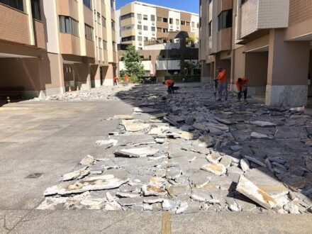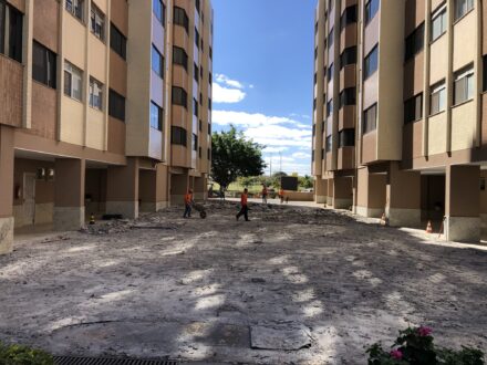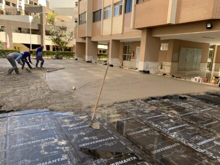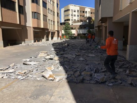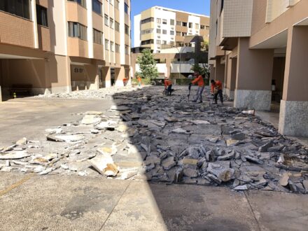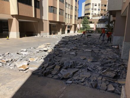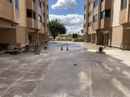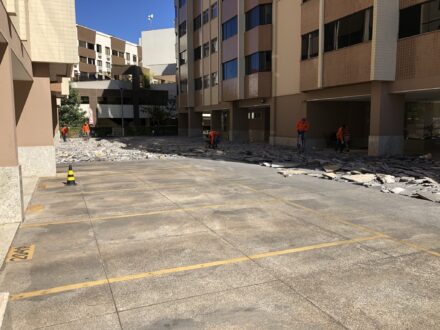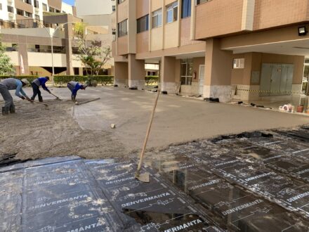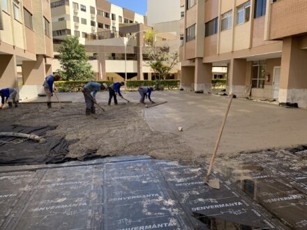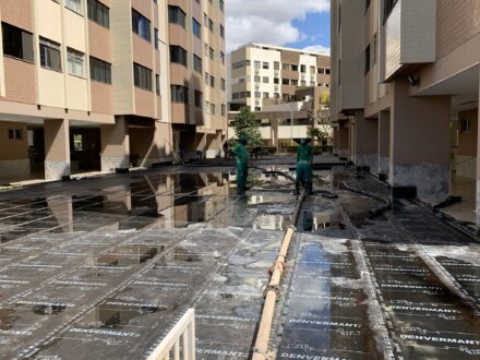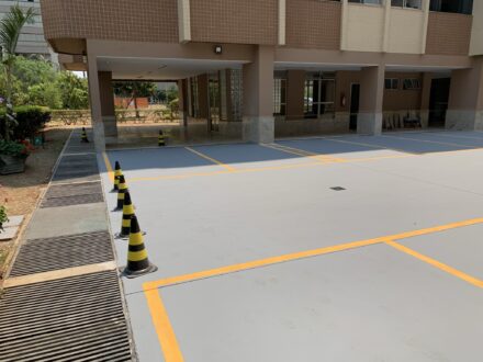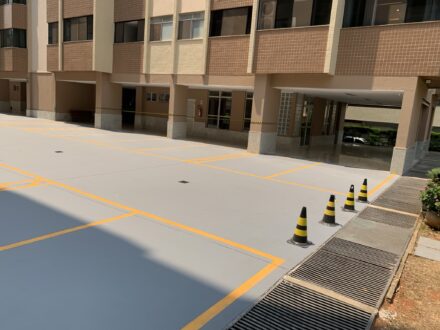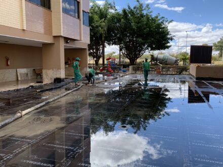 O objeto desse serviço abrange a impermeabilização de 700m² da área do estacionamento.